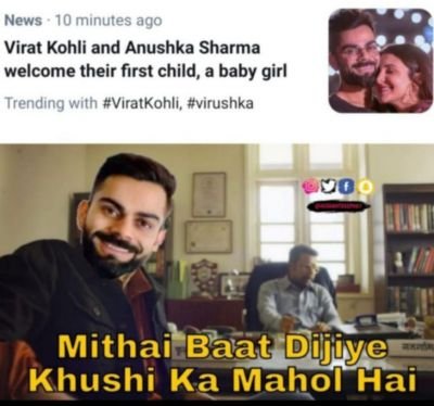 Trending Virushka meme, Virushka Blessed With Baby Girl, anushka sharma, virat kohli, virushka.